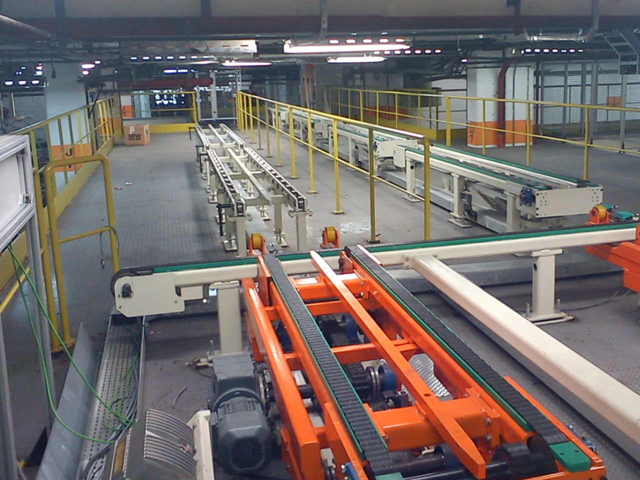 - Powertrain plate assembly conveyor: 15 roller tables, 3 elevators