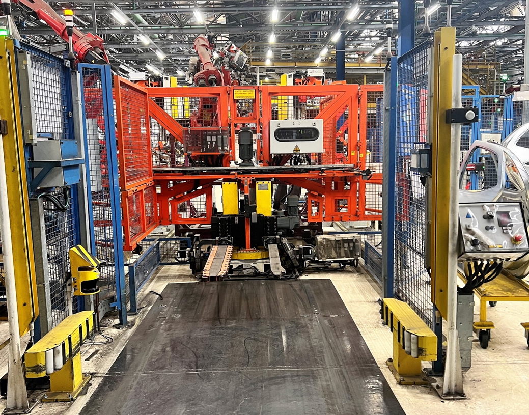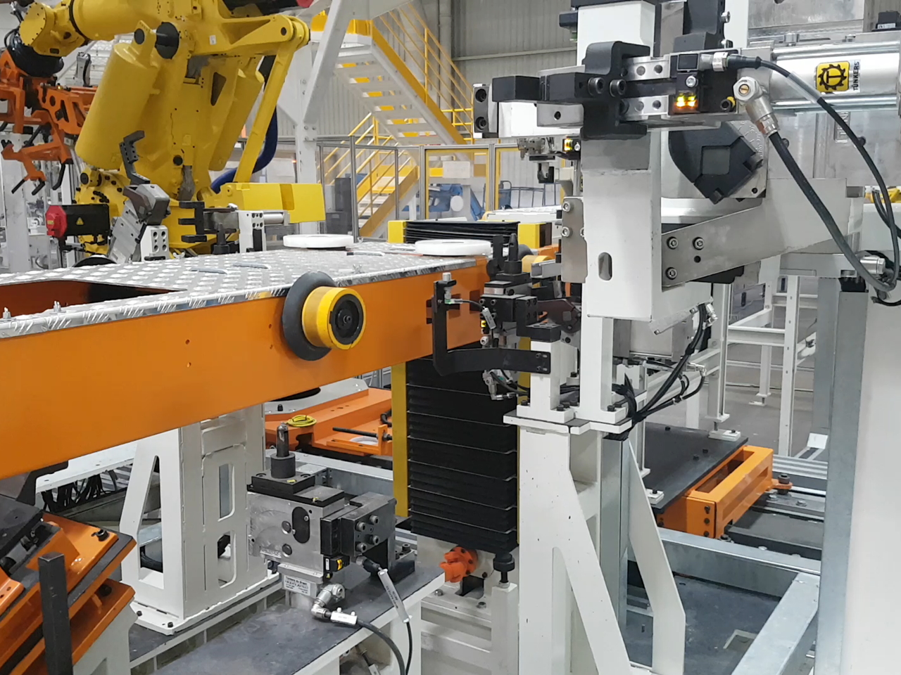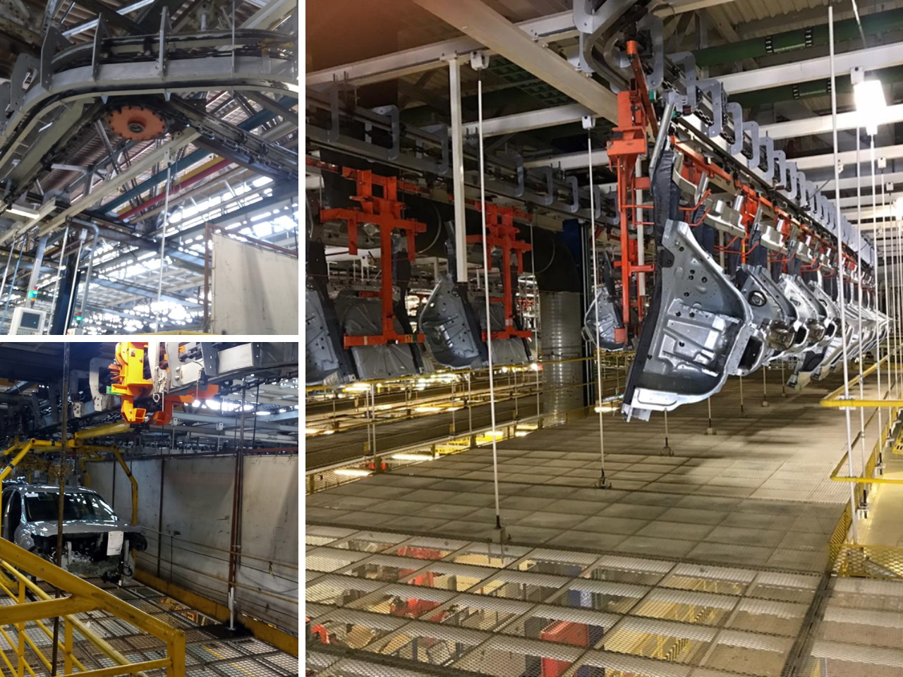 - Robot sospesi sono installati sotto un portico (completamente isolato dalle stazioni di inquadramento) per prevenire vibrazioni che affetterebbero la qualità finale del prodotto (causato dal movimento dei robot) durante la saldatura a punti