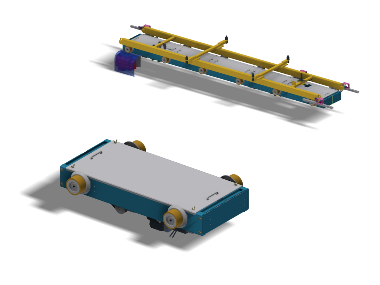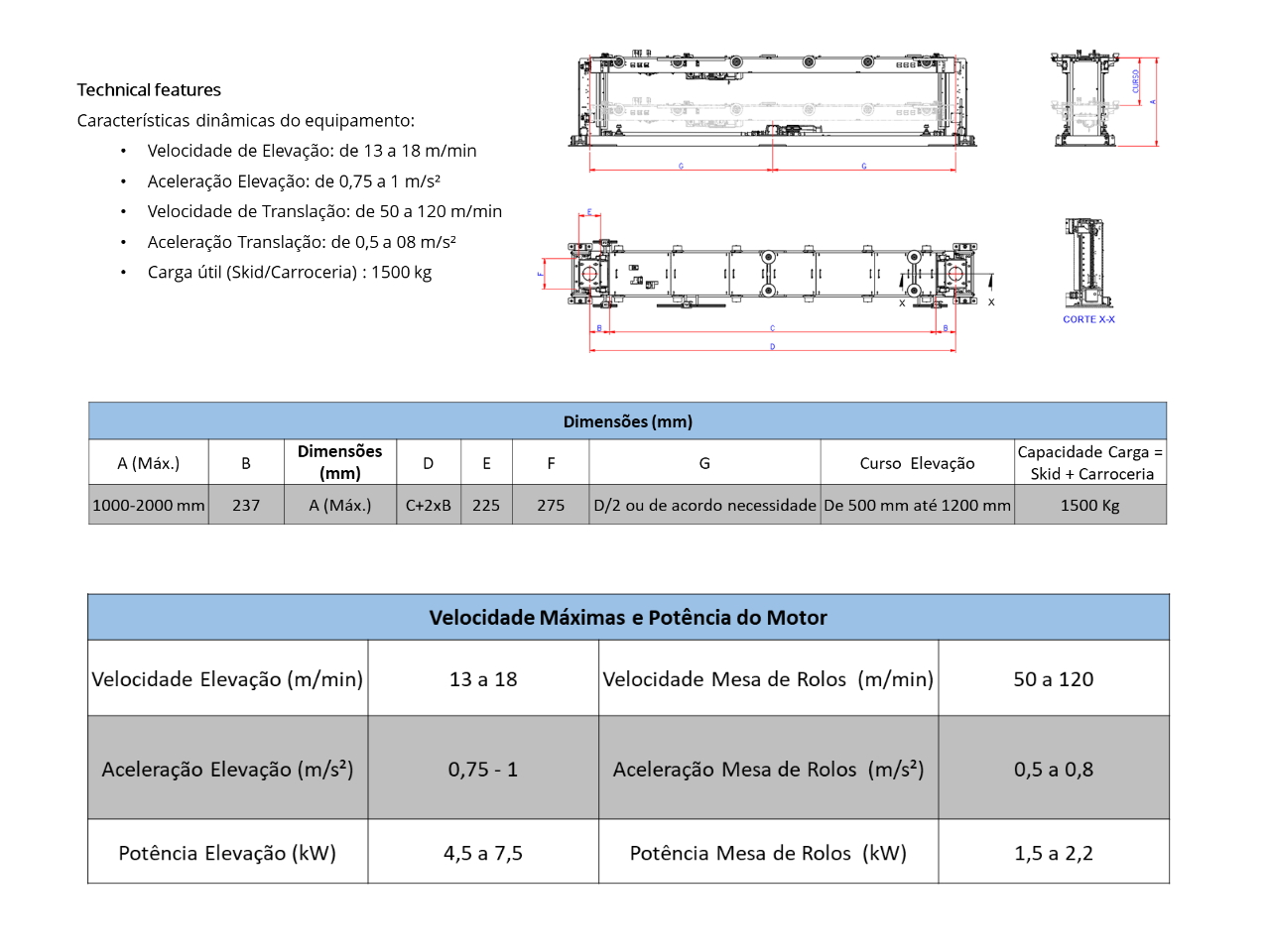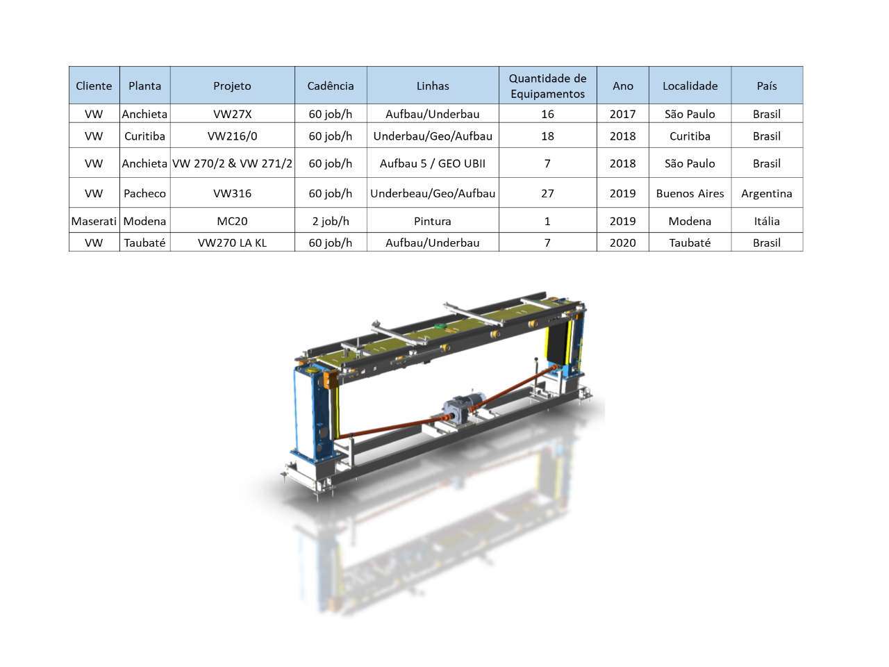 Progettate per essere modulari, semplici e con alta disponibilità di funzionamento, il sistema è adeguato principalmente per trasporto e manipolazione di carrozzerie. Altamente flessibile, possono essere istallati su cavalletti su qualsiasi pavimentazione, su elevatori, shuttles e altre attrezzature delle linee di trasporto di Skids.