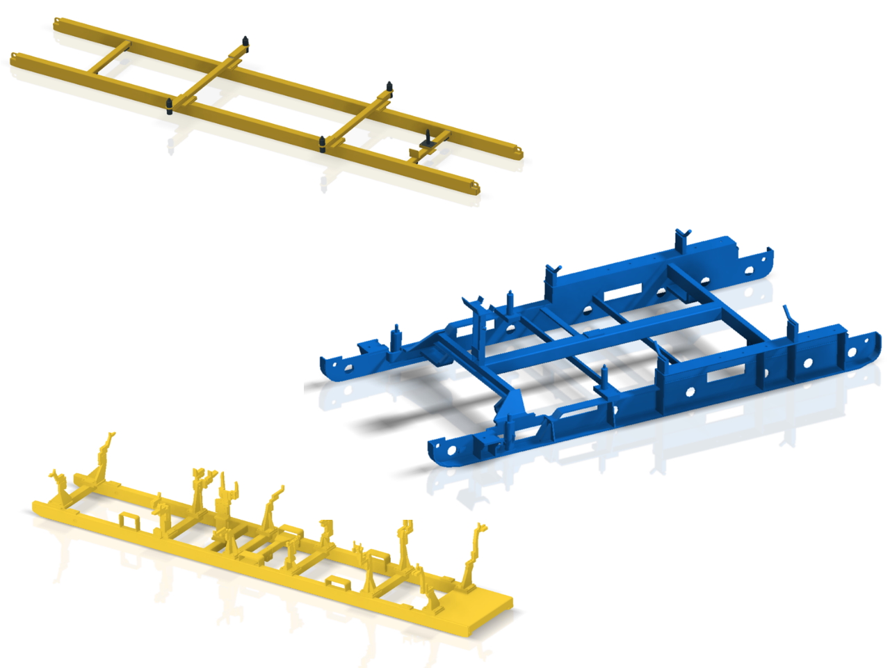 La costruzione dentro alla tolleranza permessa e il corretto processo di fabbricazione garantiscono una Skid che avrà un comportamento stabile in tutto il processo. I modelli di Skids possono essere semplicemente per il trasporto, di trattamento superficiale utilizzati nella pittura e il tipo di Skid di geometria (per linee di saldatura).